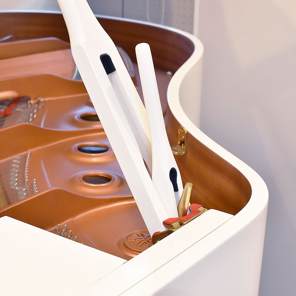 ひときわ目を引く“鮮やかなホワイト”の特注モデルです。奥行きは173cmと、設置しやすさと豊かな響きを両立した絶妙なサイズ。